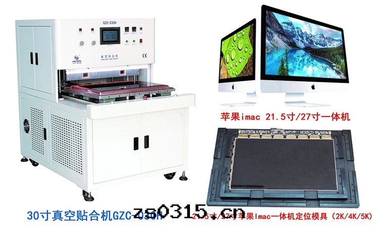 目前(qián)蘋果(guǒ)IMAC 一(yī)体機(jī)屏貼合分(fēn)为(wèi)21.5/24寸(cùn)/27寸(cùn)(有(yǒu)2K/4K/5K不(bù)同(tóng)型号(hào)),采用(yòng)带(dài)模具貼合方式,貼合效果(guǒ)好(hǎo)