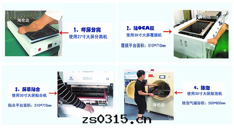 2、采用(yòng)500*700翻轉(zhuǎn)式覆膜機(jī)貼OCA,貼胶(jiāo)無气(qì)泡