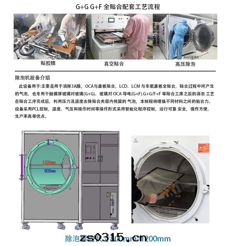 本(běn)設備适合硬(yìng)对(duì)硬(yìng)貼合(CG 貼合)或(huò)總(zǒng)成(chéng)(CTP+LCD)工序後(hòu)对(duì)其(qí)脫泡的(de)工序