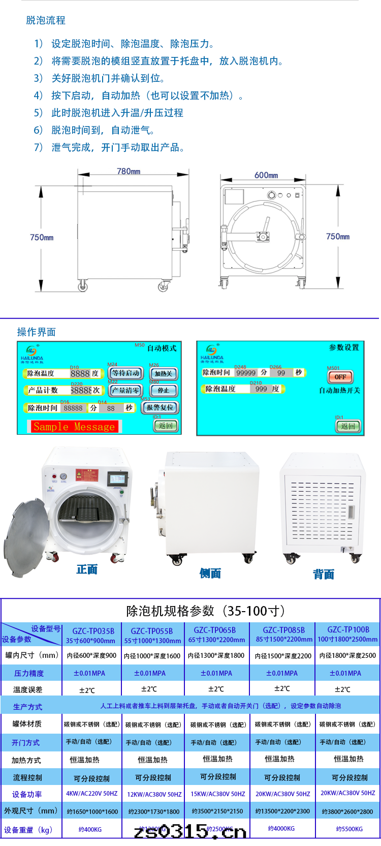 根(gēn)據(jù)客戶需要(yào)定(dìng)做除泡機(jī)的(de)尺(chǐ)寸(cùn)及(jí)材质,